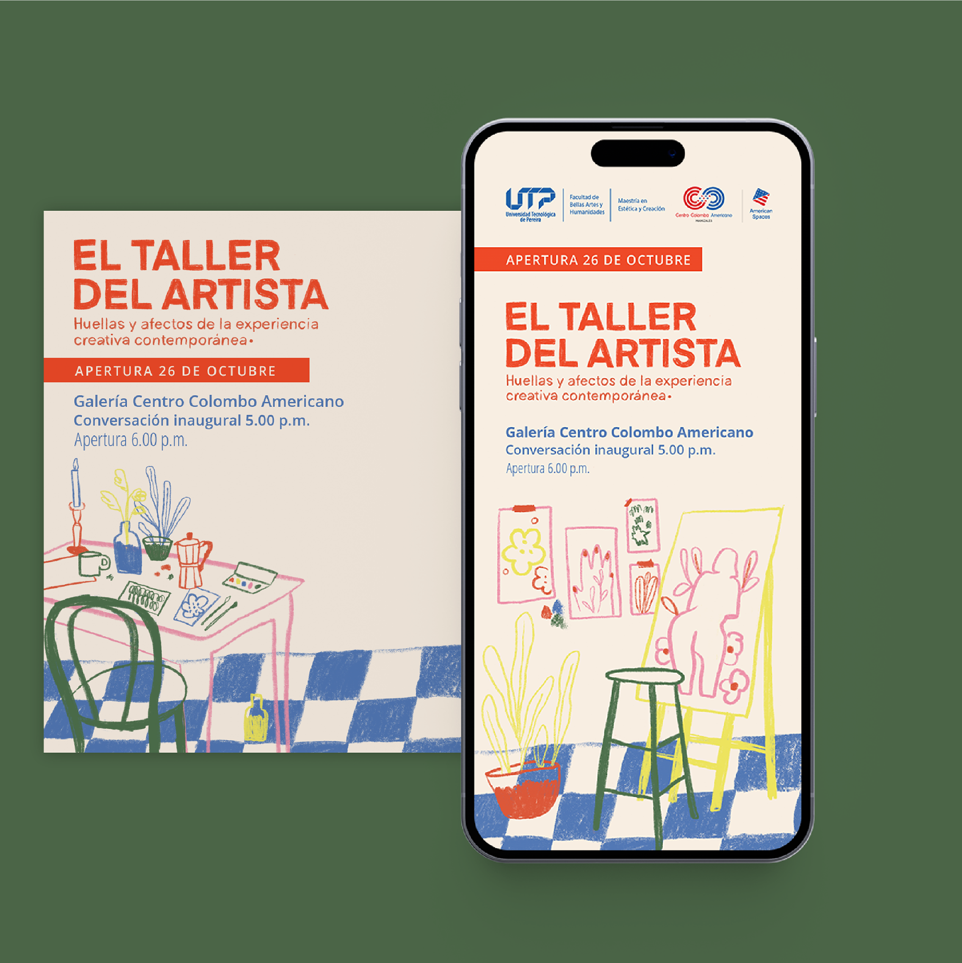 El taller del artista (The Artist's Workshop) is a project of the Maestría en Estética y Creación at the Universidad Tecnológica de Pereira, exhibited from October 26 to November 24, 2023, at the Colombo Americano Center in Manizales. Curated by Laura Valeria Buriticá.